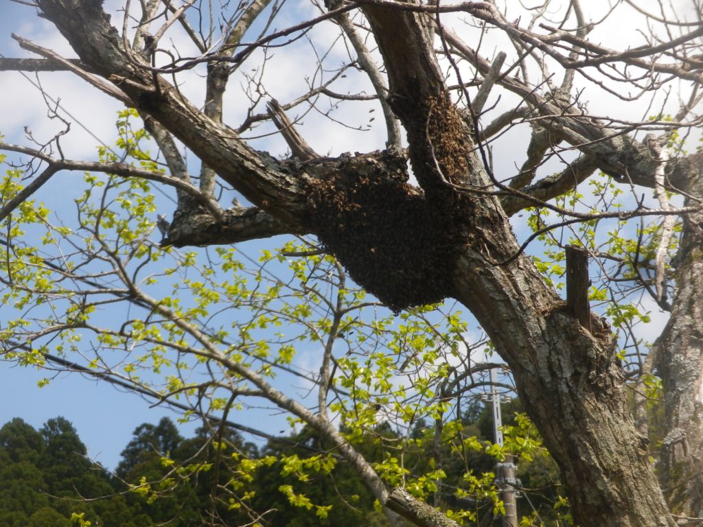 あれは温かくなる頃でした、祖父の家へ食べ物の差し入れを持って行った時に、庭の木にハチの巣ができていました。祖父の家と私の家は徒歩圏内なので、母が作った総菜やお野菜などを持って行くことがたまにあるのです。